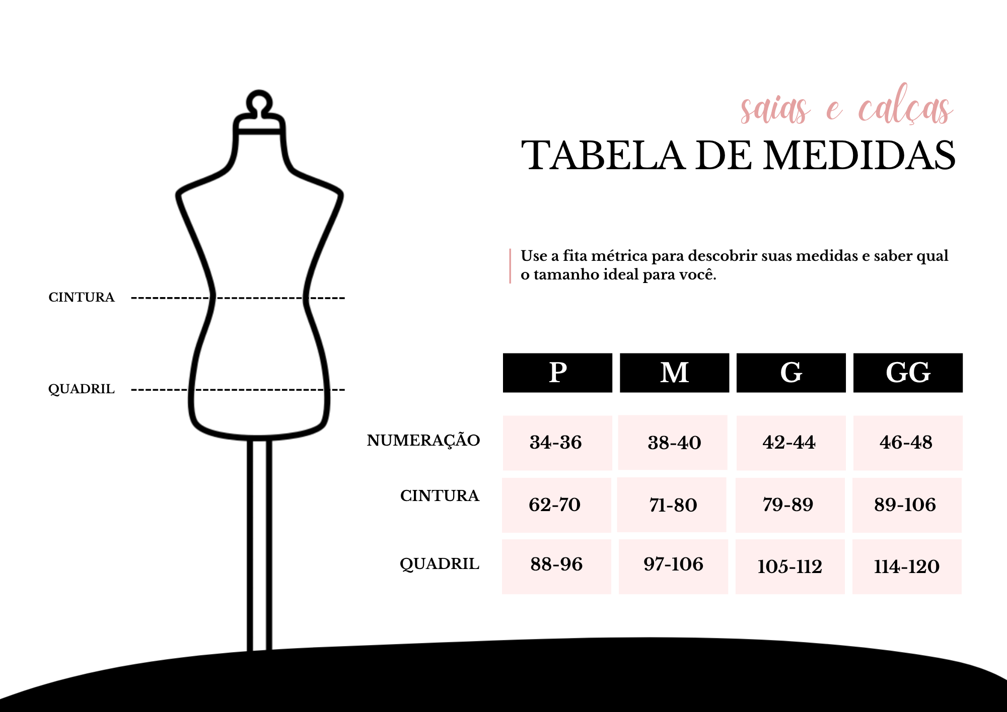 TABELA DE MEDIDAS PARA SAIAS E CALÇAS: